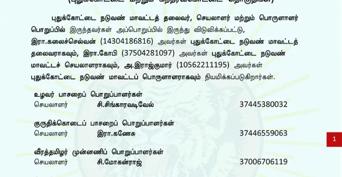 புதுக்கோட்டை மேற்கு மாவட்டப் பொறுப்பாளர்கள் நியமனம்