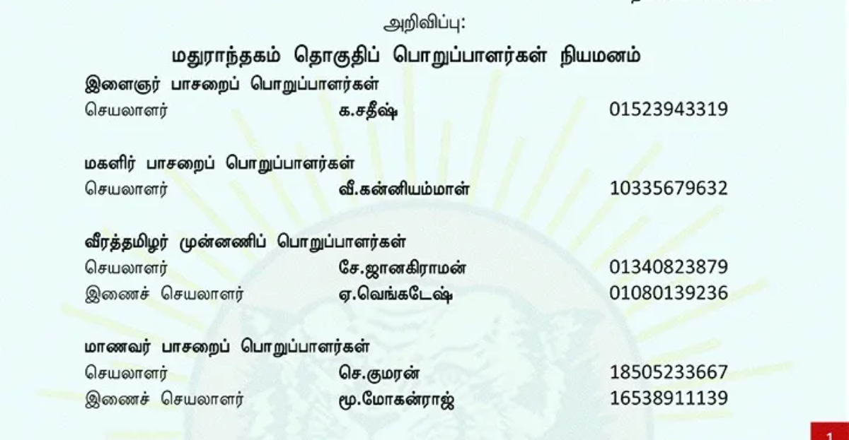 | மதுராந்தகம் தொகுதிப் பொறுப்பாளர்கள் நியமனம் |