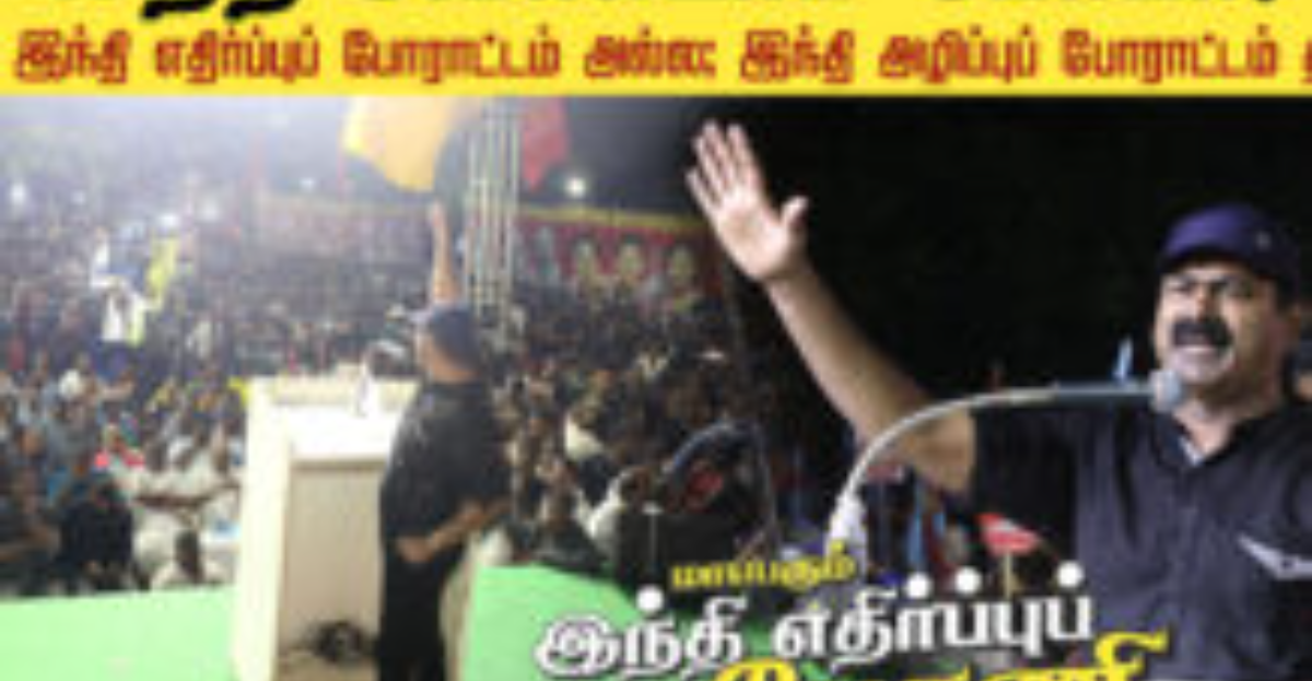 நவம்பர் 01 – ‘தமிழ்நாடு நாள்’ அன்று, சென்னை எழும்பூர் இராஜரத்தினம் விளையாட்டுத்திடலில் நாம் தமிழர் கட்சி மற்றும் தமிழ்த்தேசியக்கூட்டமைப்பு இணைந்து முன்னெடுத்த மாபெரும் இந்தி எ ...