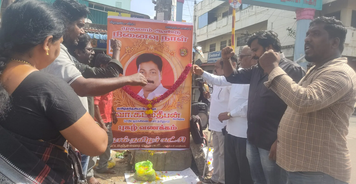8-8-2022 தமிழ்தேசியப் போராளி கடல் தீபன் அவர்களின் முதலாம் ஆண்டு நினைவு தினத்தன்று புதுச்சேரி தட்டாஞ்சாவடி தொகுதி சார்பாக திருவுருவப் படத்திற்கு மலர்வணக்க நிகழ்வு நடைபெற்றது..